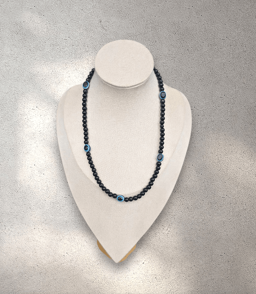 This beautifully crafted black bead and evil eye mala offers both style and spiritual protection. Designed with traditional black beads and a striking evil eye charm, it is believed to ward off negativity and attract positive energy. Perfect for hanging on your car rearview mirror, in your home, or at your workplace, this mala adds a meaningful touch of tradition and elegance while keeping your space surrounded by good vibes.