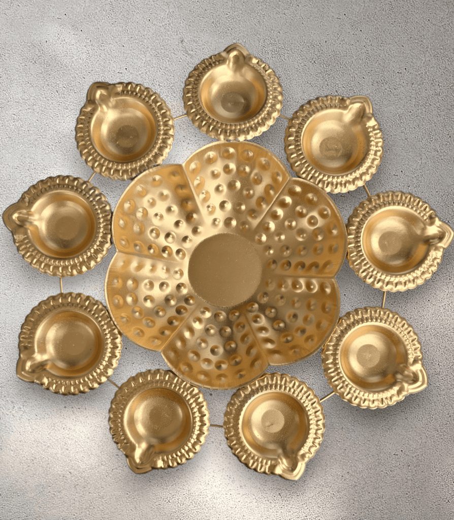 This pooja set is perfect for small prayers. It is a wonderful addition to any room or office space! It can also be used at events like Raksha Bandhan or even as wedding trays!