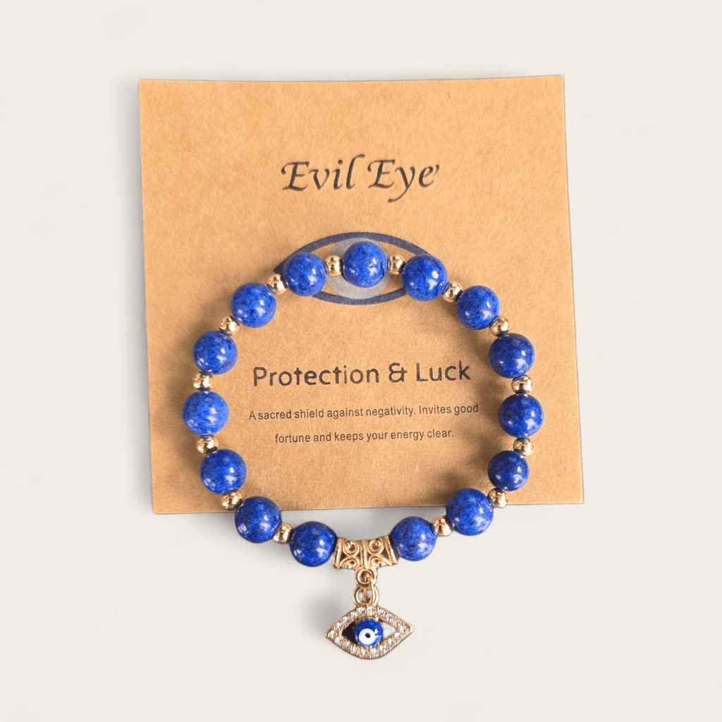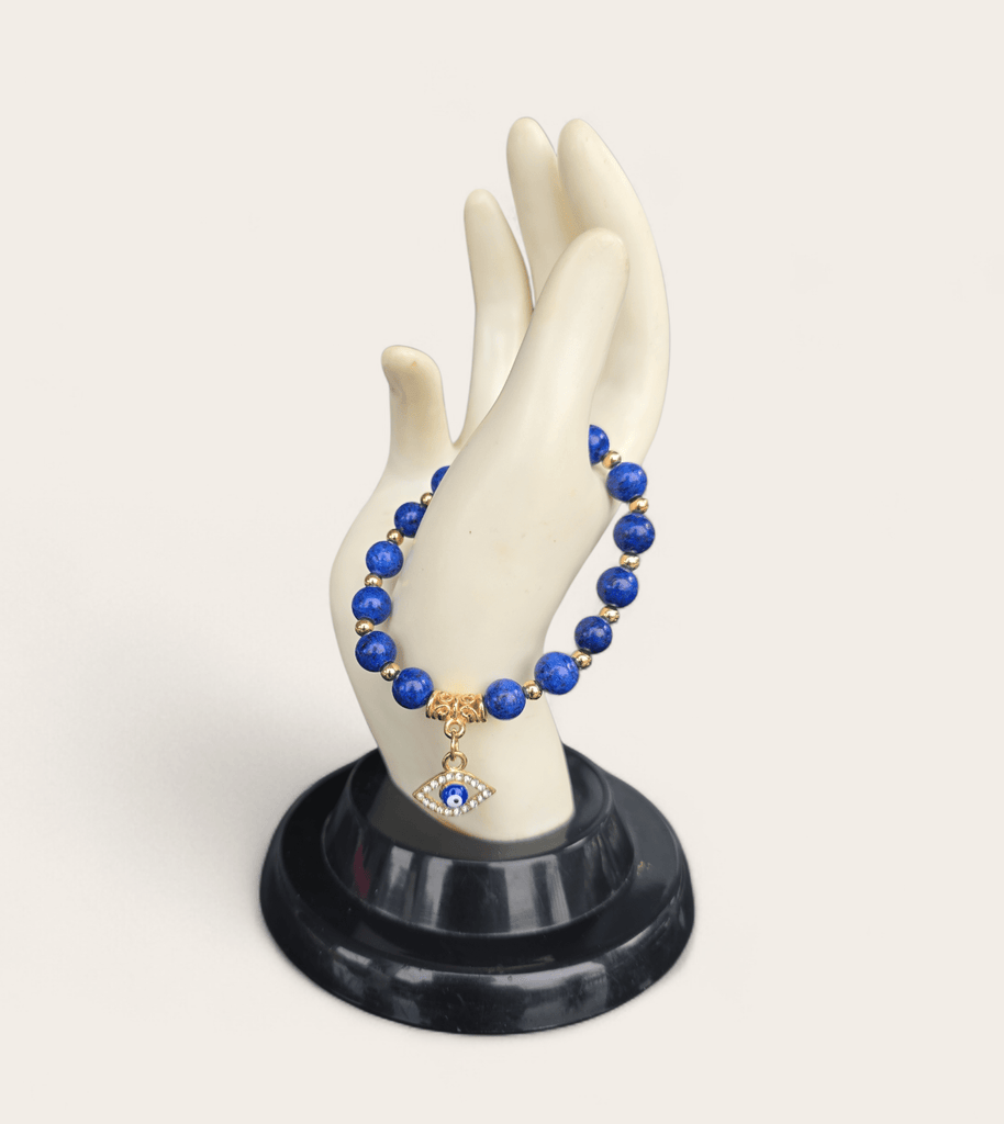 Protect yourself in style with our Nazar Evil Eye Bracelet, featuring striking blue evil eye beads paired with sleek black beads for a bold and meaningful look. Traditionally believed to ward off negative energy and protect against the evil eye, this bracelet combines timeless symbolism with modern fashion. Crafted with attention to detail, it makes a perfect accessory for everyday wear or a thoughtful gift for loved ones seeking protection and positive energy. Elevate your outfit while carrying a powerful symbol of safety and good fortune wherever you go..