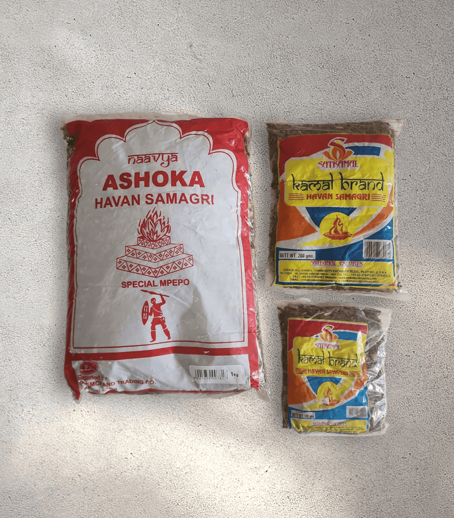 Elevate your spiritual rituals with our authentic Hawan Samagri, available in trusted Ashoka and Kamal Brand packs. Carefully blended with sacred herbs, resins, woods, and natural aromatic substances, this Hawan Samagri is perfect for all kinds of pujas, havans, and yagnas.