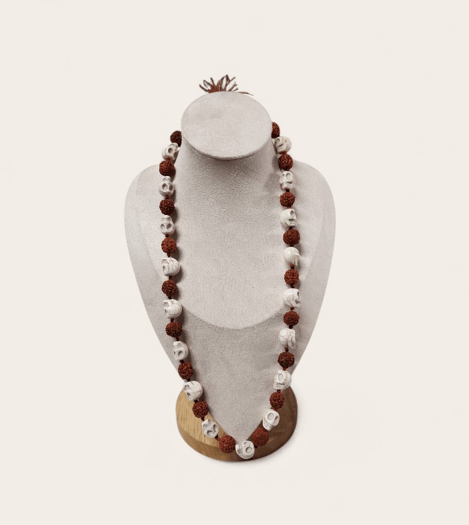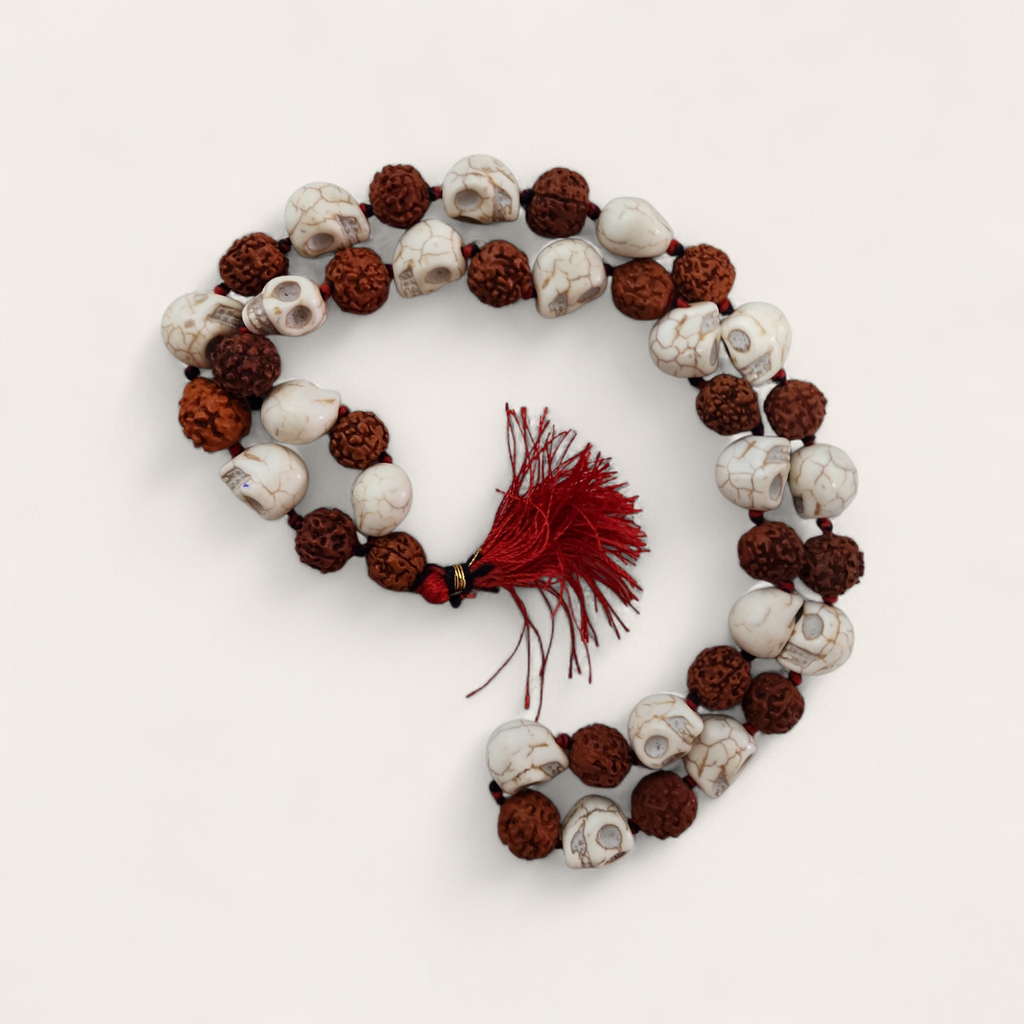 A Kali and Rudraksha Bead Mala is a sacred prayer necklace made with powerful symbolic beads, often used for spiritual practice, protection, and meditation. Rudraksha beads are traditionally associated with Lord Shiva and are believed to promote calmness, strength, and positive energy, while the Kali beads symbolize protection and the removal of negative influences.