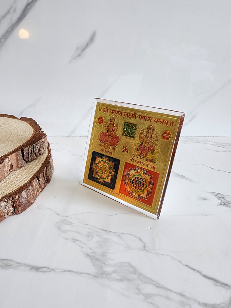 Adorned with vibrant artwork and sacred geometry yantras, this gold-toned plaque can be placed in a puja room, cash box, desk, or entrance for maximum spiritual benefit.Benefits & Symbolism: