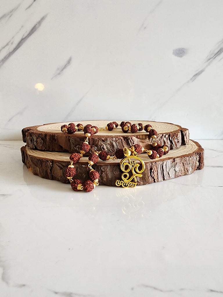 This Rudraksha mala is a sacred symbol of devotion and spiritual connection, traditionally used in meditation and prayer. Each bead is believed to carry protective and healing energies, fostering inner peace, clarity, and strength. Adorned with a gold-toned "ॐ" Tamil (Om) pendant and Lord Murga's Vel, it serves as a constant reminder of faith, grounding the mind in devotion and balance.