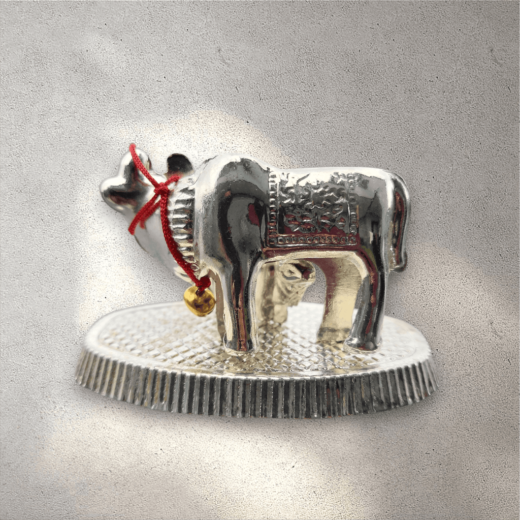 Silver Metal Kamadhenu Cow and Calf Statue