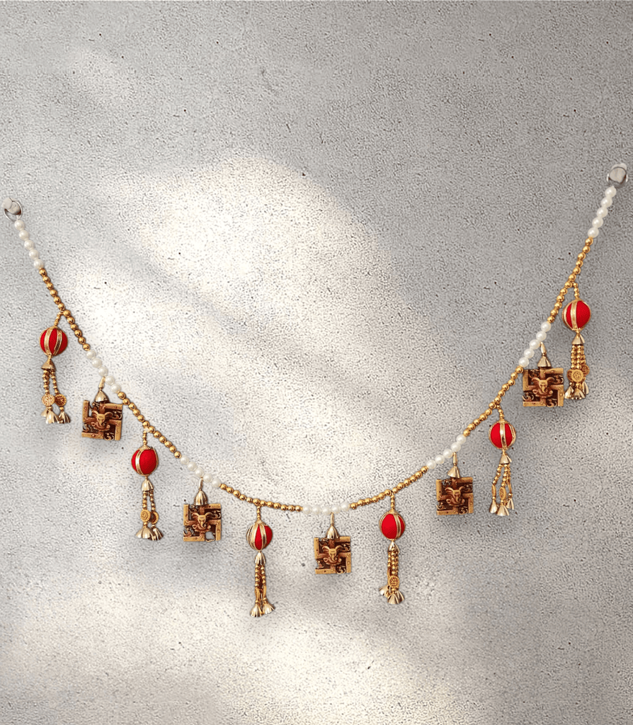 Invite auspicious energy into your home with our Swastika Ganesha Door Garland, designed to bring blessings, prosperity, and protection. In Hindu tradition, hanging a garland at the entrance is believed to welcome positive vibrations and ward off negativity. The Swastika represents good fortune and well-being, while Lord Ganesha symbolizes wisdom and the removal of obstacles.