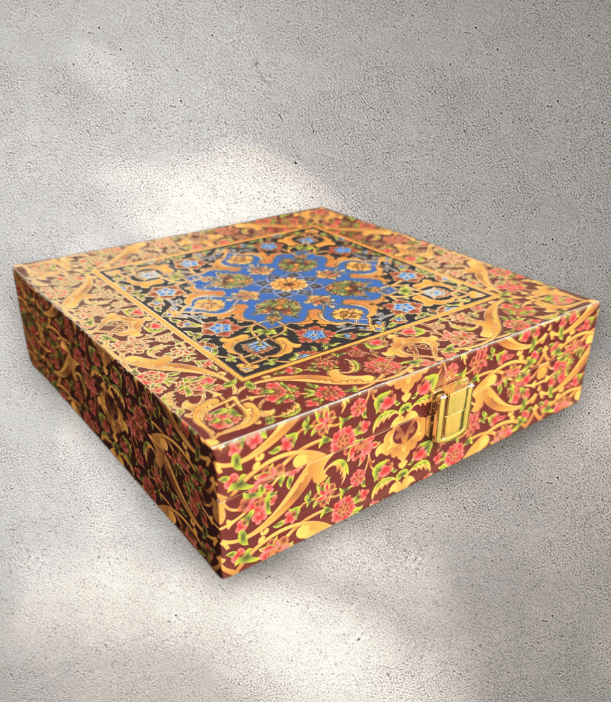 This beautifully crafted decorative wooden box contains internal compartments accompanied by a beautiful designed outer cover. A stylish and versatile addition to any celebration.